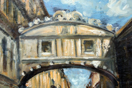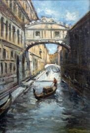 Il Ponte dei Sospiri, olio su tavola, cm 40x30, firmato, entro cornice.
