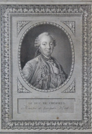 Le Duc de Choiseul, Ministre et Secretaire d'Etat, inicisione, cm.35x25,5, XVIII secolo, entro cornice.