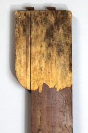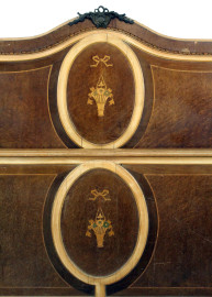Letto ad una piazza e mezzo in legno con particolari intarsiati, XX secolo, cm h 160x153, (difetti).