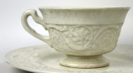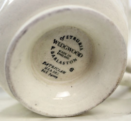 Lotto composto da sei tazze da thé e sei piattini da dolce in ceramica Wedgwood of Etruria & Barlaston, prima metà XX secolo