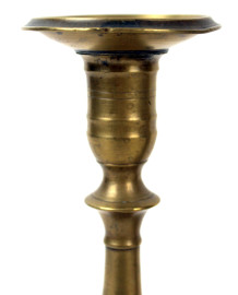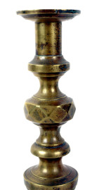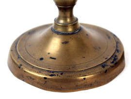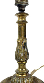 Lotto composto da tre candelieri in metallo dorato, alt. max cm 27,5, prima metà XX secolo, (difetti)