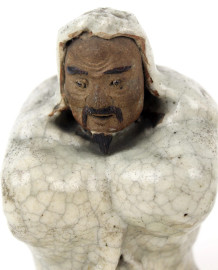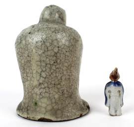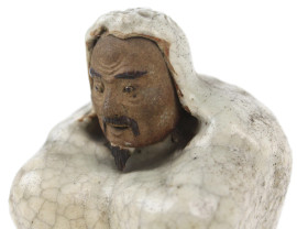 Lotto di due figure orientali in ceramica policroma, altezza max cm 13, XX secolo.