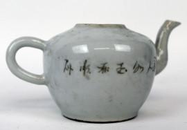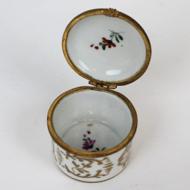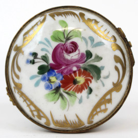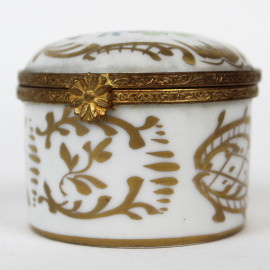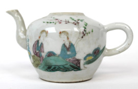 Lotto di due oggetti in porcellana, composto da un cofanetto ed una teiera, decori di fiori e figure orientali, misure max cm 8x14,5, manifatture diverse, XX secolo, (difetti).