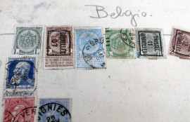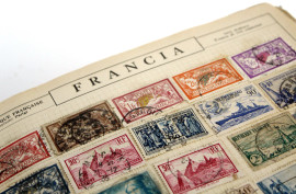 Lotto di due raccoglitori di francobolli di epoche diverse ed un catalogo