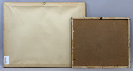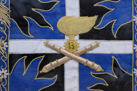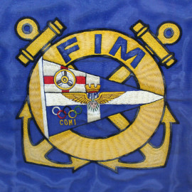 Lotto di due ricami raffiguranti stemmi dell'Arma Carabinieri e della Federazione Motonautica Italiana (CONI), misure max cm 39,5x51,5, XX secolo, entro cornici.
