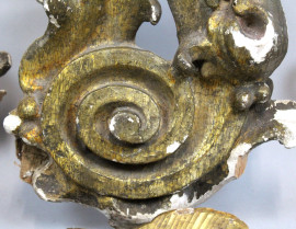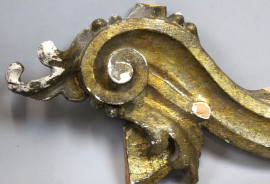 Lotto di quattro fregi in legno intagliato e dorato, XIX secolo, (difetti).