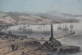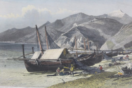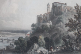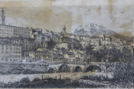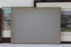 Lotto di quattro stampe a colori raffiguranti Ventimiglia e Genova, cm 17,5x23,5, fine XIX secolo, entro cornice.