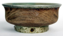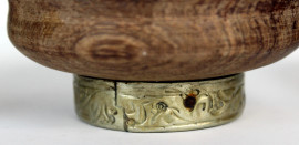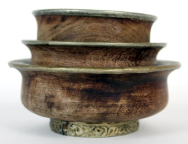 Lotto di tre coppette in legno e metallo argentato, diametro max cm 12,5, arte orientale, XX secolo