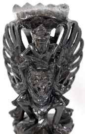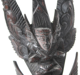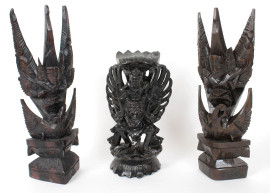 Lotto di tre sculture indonesiane in legno intagliato, altezza max cm.30, XX secolo