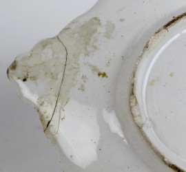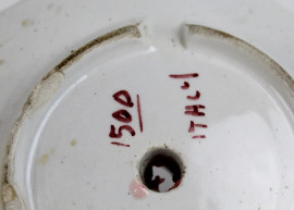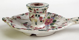 Lotto di un vasetto in vetro ed una bugia in porcellana policroma, altezza max cm. 15, (difetti)