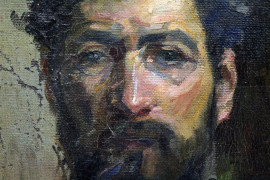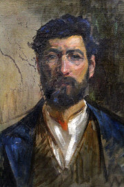 Ritratto d'uomo, olio su tela, cm 63x50, entro cornice.
