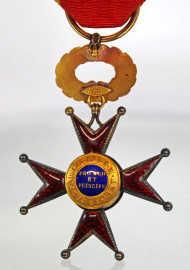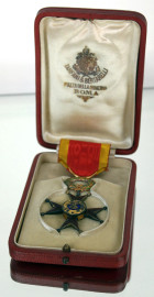 Medaglia vaticana con croce dell'Ordine di San Gregorio Magno, marcata Tanfani & Bertarelli, lunghezza cm 11,5, XX secolo, entro custodia originale, (difetti).