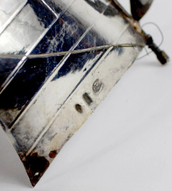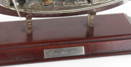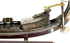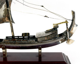 Modellino di veliero in argento Burma River Pirate, altezza cm. 20, montato su base in legno, (difetti).