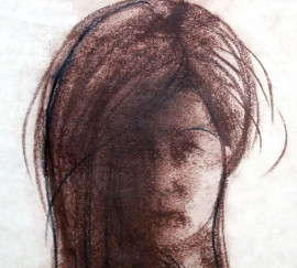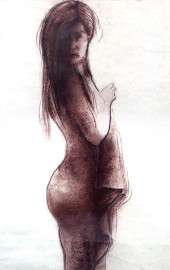 Nudo femminile, matita rossa e carboncino su carta, cm. 74x48,5, firmato, entro cornice.