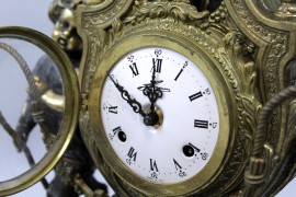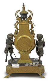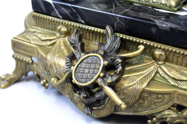 Orologio da camino in bronzo e marmo, metà XX secolo, cm h 62, (meccanismo da revisionare).