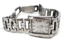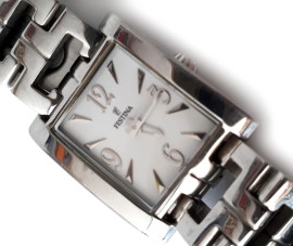 Orologio da polso vintage da donna, qualità svizzera, marca Festina con bracciale in acciaio e quadrante quadrato in acciaio e madreperla