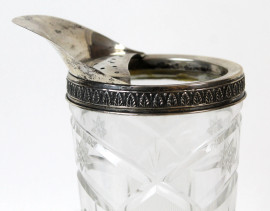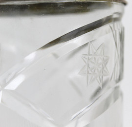 Portaghiaccio in cristallo controtagliato, finiture in argento, cm h 24, XX secolo.