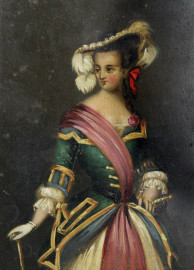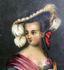 Portasigari in legno e papier mâché, con decoro raffigurante dama, XIX secolo, cm 14,5x7x1