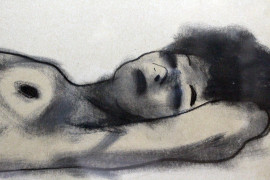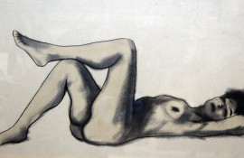 Nudo di donna, disegno su carta applicata su tela, cm 50x70,entro cornice.
