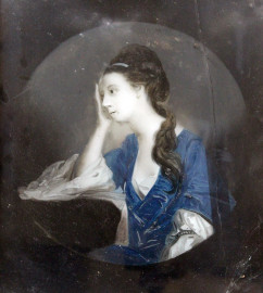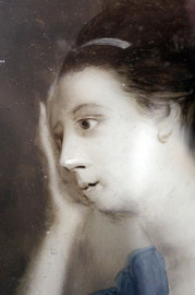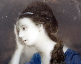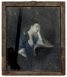 Ritratto di fanciulla, dipinto sotto vetro, cm 21,5x27, prima metà XX secolo, entro cornice, (difetti).