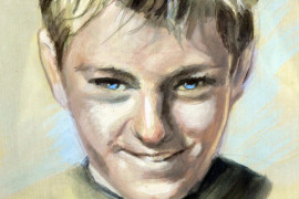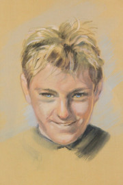 Ritratto di fanciullo, tempera su carta, cm 37x29, XX secolo, entro cornice.