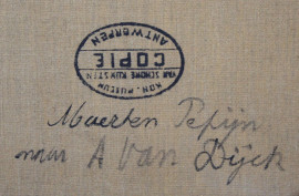 Ritratto d'uomo, copia da Antoon Van Dyck, olio su tela cm. 65,5x50,5, firmato a tergo, entro cornice.