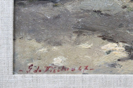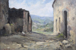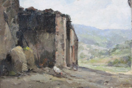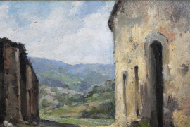 Tiepido sole-Mugello, olio su cartone, 33,5x46,5 cm, firmato e datato in basso a sinistra, entro cornice