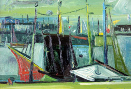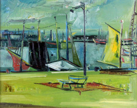 Scorcio di porto, olio su cartone telato, cm. 38x48, entro cornice.
