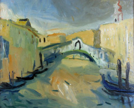 Scorcio di Venezia, olio su tavola, cm. 41x50, entro cornice.