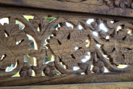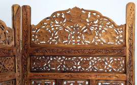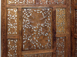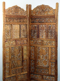 Separè indiano in teak, XX secolo, composto da due pannelli traforati, cm h 183x51 cadauno