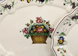Servizio di piatti in ceramica Agostinelli e Dal Prà, dipinta a decoro di fiori, (sbeccature e difetti).