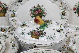 Composto da: 24 piatti piani, 12 piatti fondi, 12 piattini da dolce, 14 coppette, 1 zuppiera, 1 insalatiera, 1 salsiera e 7 piatti da portata.