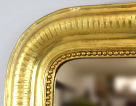 Specchiera francese, XIX secolo, in legno intagliato e dorato, battuta interna a perline, cm 171x117