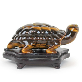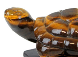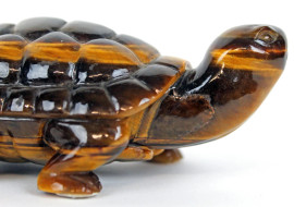 Tartaruga, scultura in occhio di tigre, base in legno laccato, cm h 6,5x13, XX secolo.