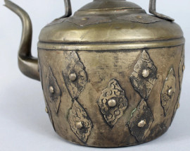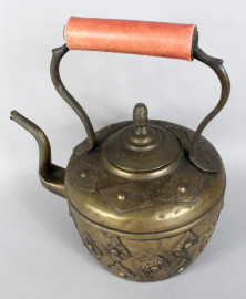 Teiera in metallo, arte orientale, altezza 31,5 cm.