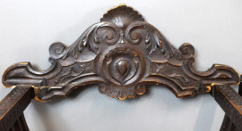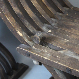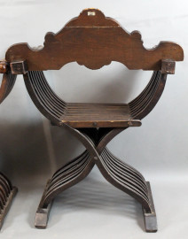 Tre sedie Savonarola in noce intagliato, prima metà del XX secolo, (difetti)