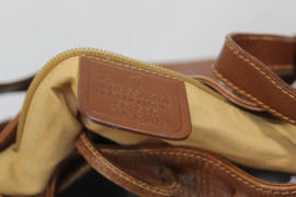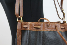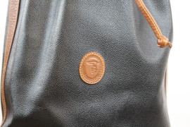 Trussardi, borsa-secchiello in pelle nera e marrone, foderatura interna in tela e tracolla removibile, n. di serie B10171032, misure cm 33x31x11, (lunghezza tracolla cm 27), (segni di utilizzo).