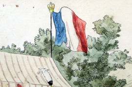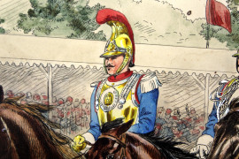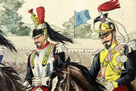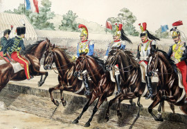 Ussari francesi, acquarello su carta, cm 39x47, firmato, entro cornice, (macchie).