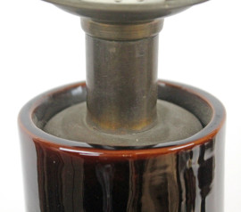 Vaso in ceramica color sangue di bue montato a lampada, cm h 39