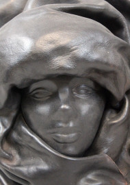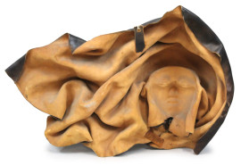 Volto di donna, lavorazione in cuoio, XX secolo, cm h 42x62.