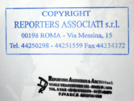 Timbro "Copyright Reporters Associati & Archivi s.r.l." sul retro.