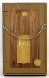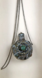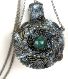 Antica snuff bottle in metallo e pietre dure, entro teca, misure totali cm 43x26x6