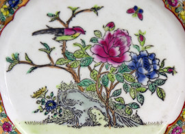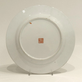 Antico piatto in porcellana cinese, tarda Dinastia Repubblica Popolare Cinese (XX sec.), finemente dipinto a mano, diametro cm 27, al retro marchio dinastico in lacca rossa, Cina Popolare