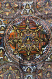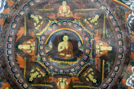 Antico thangka tibetano, dipinto su tela, cm 85x59,5, entro cornice