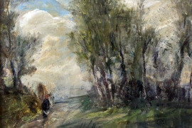 Antonio Asturi, Scorcio di Vico Equense, olio su cartone, cm 19x25,5, entro cornice.