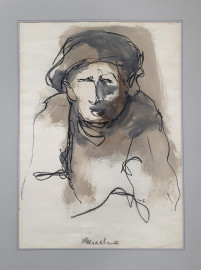 Artista espressionista del Novecento, Figura, anni 50, carboncino su carta, cm 56x40, firmato