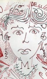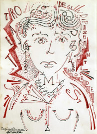 Artista futurista del Novecento, Figura con parole in libertà, tecnica mista su carta del Maestro Cosimo Buccari, cm 20x14,5, firmato Cosimo Buccari Futurista in basso a sinistra