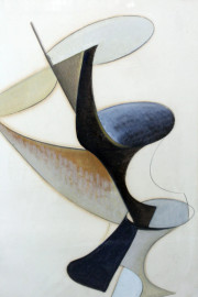 Astratto, tecnica mista su carta, cm 70,5x50, firmato e datato, entro cornice