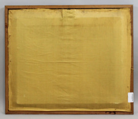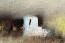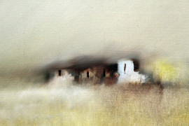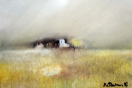 Paesaggio con casolare, olio su tela, cm 50x60, entro cornice.