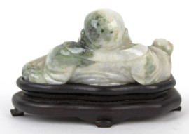 Buddha in pietra dura, altezza cm 4,5, base in legno, arte orientale, XX secolo.
